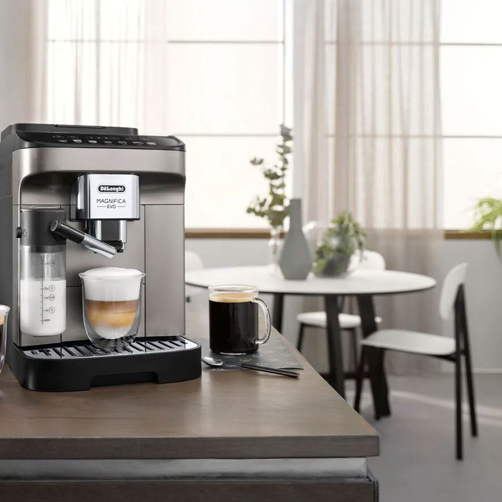 Genießen Sie Kaffeegenuss auf Barista-Niveau mit dem ECAM 290.81.TB Magnifica Evo Milk Kaffeevollautomat. Dieses elegante Modell vereint innovative Technik, intuitive Bedienung und eine große Auswahl an Kaffeespezialitäten – ideal für anspruchsvolle Genießer zu Hause oder im Büro.